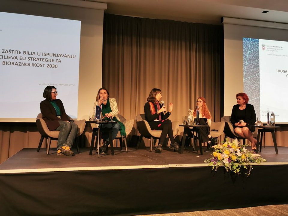 Organizatori panel rasprave “Uloga zaštite bilja u strategiji o bioraznolikosti” su bili JU Zeleni prsten Zagrebačke županije i Hrvatsko društvo biljne zaštite. Raspravu je vodila dr. Tatjana Masten Milek, ravnateljica Zelenog prstena. Panelisti rasprave „Uloga zaštite bilja u strategiji o bioraznolikosti“ bili su Gabrijela Šestani načelnica sektora za prirodu Zavoda za zaštitu okoliša i prirode MINGOR, koja je ujedno održala i izvrsno uvodno predavanje i upoznala nas sa Strategijom o bioraznolikosti, dr.sc. Helena Virić Gašparić – asistentica na Zavodu za poljoprivrednu zoologiju, Sveučilišta u Zagrebu, Agronomskog fakulteta, a ujedno direktorica i osnivač GREENER d.o.o, dr.sc. Ana Ješovnik, voditeljica projekta Cro Buzz Klima iz Zavoda za zaštitu okoliša- MINGOR te dr.sc. Lucija Šerić Jelaska – viša znanstvena suradnica, voditeljica istraživačke grupe s PMF-a.
