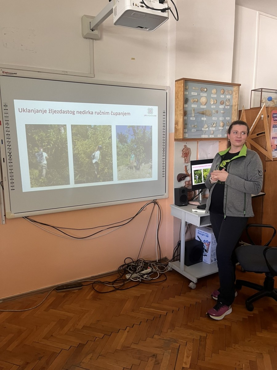 Jedan od ključnih koraka u borbi protiv invazivnih biljnih vrsta je edukacija. Zato smo održali predavanje i terensku nastavu u OŠ Bregana za učenike 6. razreda. Učenici su saznali što su invazivne biljne vrste, kako dospijevaju u naš okoliš te zašto su opasne i kako ih prepoznati. Nakon zanimljivog predavanja, znanje smo provjerili kroz kviz – a najuspješniji su osvojili nagrade! U terenskom dijelu učenici su imali priliku uživo prepoznati invazivne biljne vrste i isprobati mobilnu aplikaciju “Invazivne vrste u Hrvatskoj” za praćenje i prijavu opažanja. Hvala OŠ Bregana na gostoprimstvu i svim učenicima na angažmanu.
