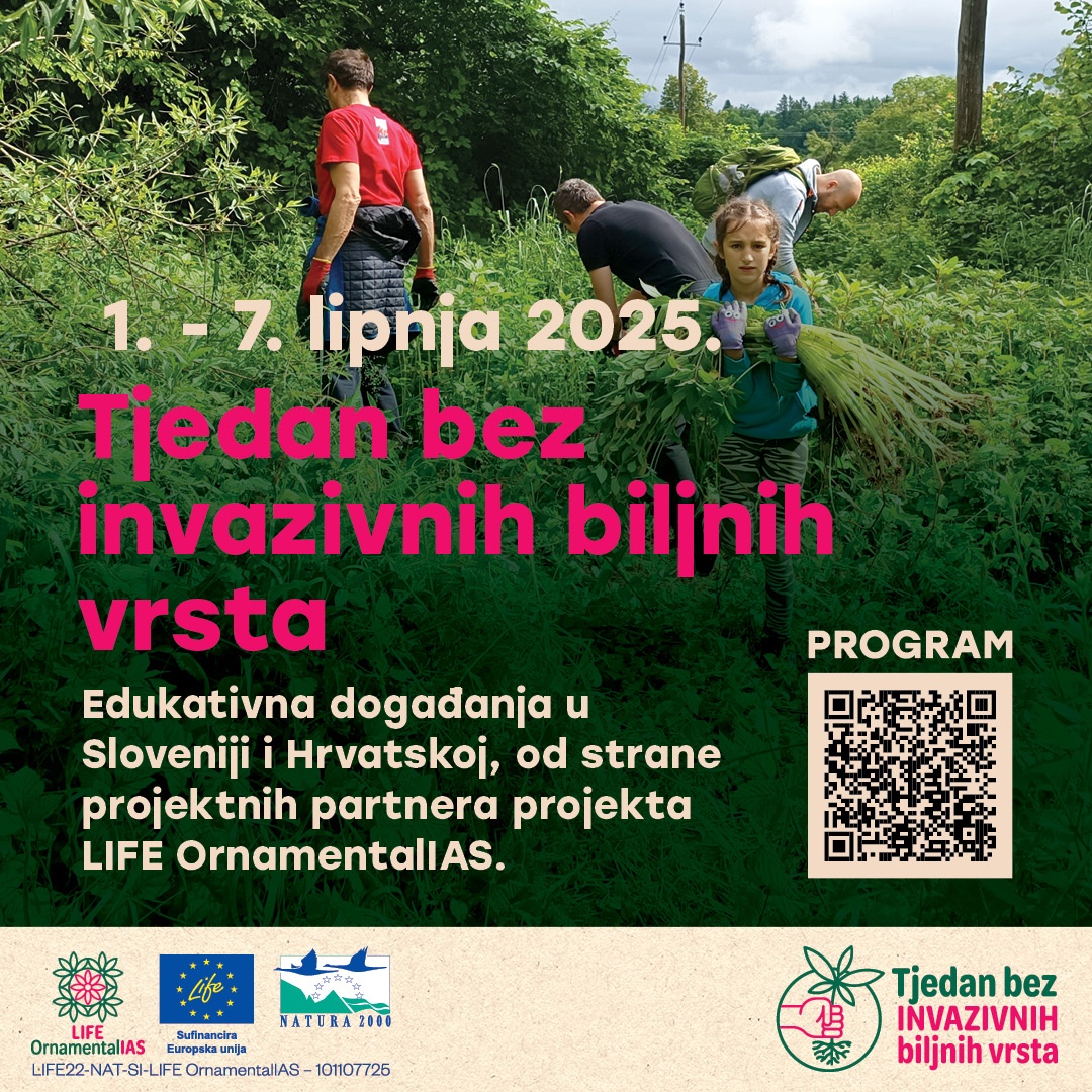 Više o projektu LIFE OrnamentalIAS: „Prevention and management of adverse impact of ornamental invasive alien plant species on endangered habitat types and species of EU importance“ možete pronaći na službenoj web stranici projekta. https://invazivne-tujerodne-vrste.si/prva/aktivnosti/projekti/lifeornamentalias/